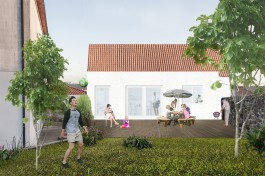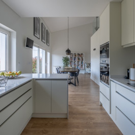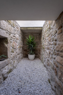 It was proposed to extend the house to the east, maintaining its vernacular language, clarifying and requalifying both its interior spatiality as the exterior spaces: to mend the space on the east, degraded and without significant use, such as the lower entry floor, poorly built, and significantly increase the façade and thus creating a frank relationship with the garden, one of the clients’ wishes.