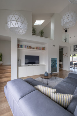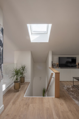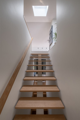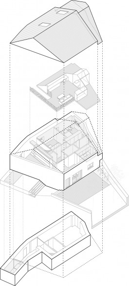 Without increasing significantly the built area in order to optimize the budget, it is proposed to reuse the attic (a storage space before) opening it to the social areas through a double height which also distinguish these spaces giving them a new spatial quality and allowing to increase the natural lighting of the inner spaces, and as well providing the house with a more informal and relaxed program on this upper level.