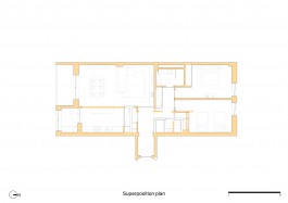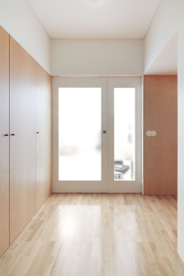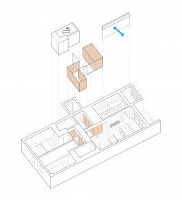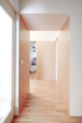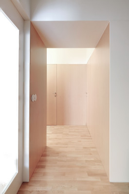 In order to unify the new layout spaces there is a 2mt high surface made by doors, wardrobes and wood panels.