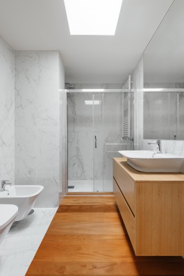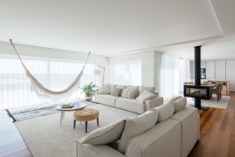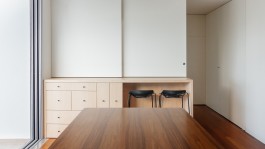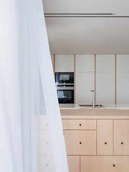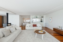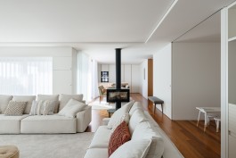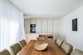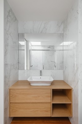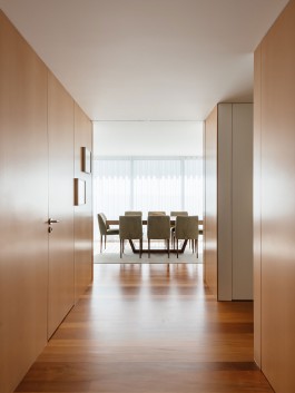 The choice of materials was limited to the ones available in the building so we choose the white lacs and paints to maximize the apartment natural lighting and wood panels in the distribution zones, in a dialogue between the abstract white and the concrete wood.