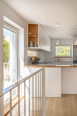 On the lower floor, we design a new two-bedroom apartment facing the south and the surroundings.
